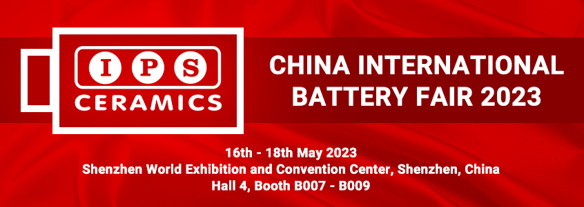 IPS Ceramics will be at this year’s China International Battery Fair in Shenzhen, China. The China International Battery Fair is a regular event for the